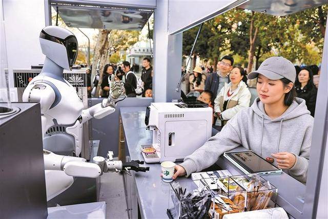 深圳人才公园的智平方机器人凭借灵活的机械臂现场为游客制作咖啡。 深圳特区报记者 周红声 潘康 曹鹏飞 摄